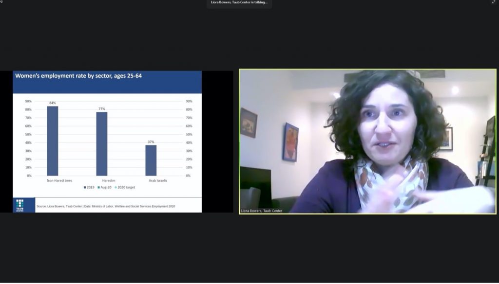 While discussing her research on the impact of the coronavirus pandemic on women in Israel’s workforce, Bowers stated, “During the first two lockdowns, in 18 of Israel’s 19 industries, the share of women among those who lost jobs was higher than their share in that industry.”