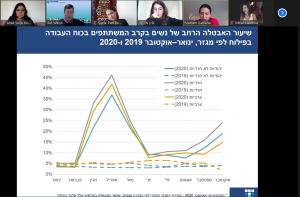 Taub Center President Prof. Avi Weiss presented findings from the Taub Center “State of the Nation 2020” report, focusing on findings related to employment, to lawyer Mariam Kabaha and her staff at the Equal Opportunities at Work Unit of the Employment Branch of the Ministry of Labor, Social Affairs and Social Services.