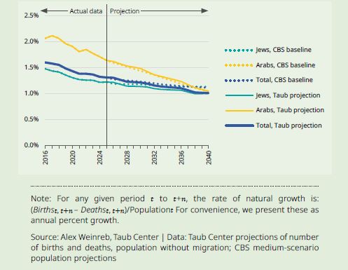 Israel’s recent and projected rate of natural growth (%), by subpopulation, 2024‒2040