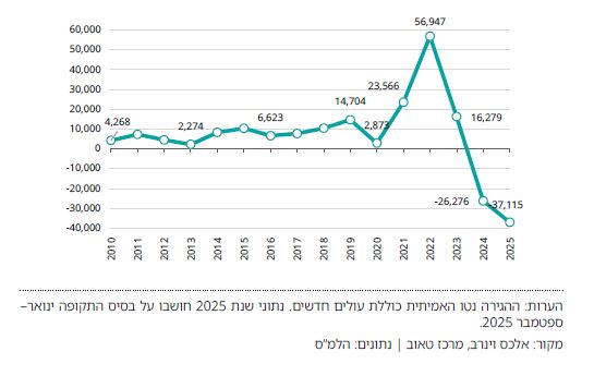 - מאזן ההגירה שלילי: שנת 2025 היא השנה השנייה ברציפות עם הגירה נטו שלילית