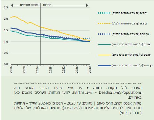 בעתיד הנראה לעין ימשיך מספר הלידות לעלות על מספר הפטירות. עם זאת, ישראל כבר אינה צפויה לחוות שיעורי גידול שנתיים של 1.9%–2.0% כעניין שבשגרה. יתרה מזו, המדינה תידרש למאזן הגירה חיובי כדי לשמור על גידול דמוגרפי העולה על 1.3% בשנת 2025, על גידול של יותר מ-1.2% עד 2030, ועל גידול של יותר מ-1% עד 2040. עם כל זאת, נתונים אלו עדיין משקפים גידול דמוגרפי גבוה בהשוואה למדינות אחרות בעלות הכנסה גבוהה.